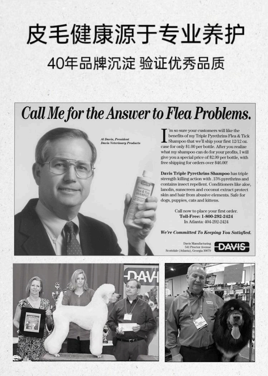 Founded in the United States in 1982, Davis Manufacturing began as a family-owned company in Atlanta, Georgia, with a simple mission to create safe, effective, and innovative grooming and healthcare products for pets. Over the past 30 years, Davis has grown from its humble beginnings into a trusted global brand, known for its commitment to quality, innovation, and customer care. Today, Davis products are used and recommended by professional groomers, veterinarians, and pet retailers worldwide, continuing the company’s tradition of excellence and dedication to pet well-being.