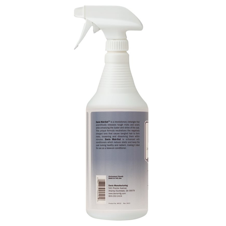 Davis Mat-Out instantly loosens tangles, mats, and knots without damaging the coat. Its lightweight formula makes brushing easier while adding shine and smoothness. Perfect for long-haired breeds and grooming prep.